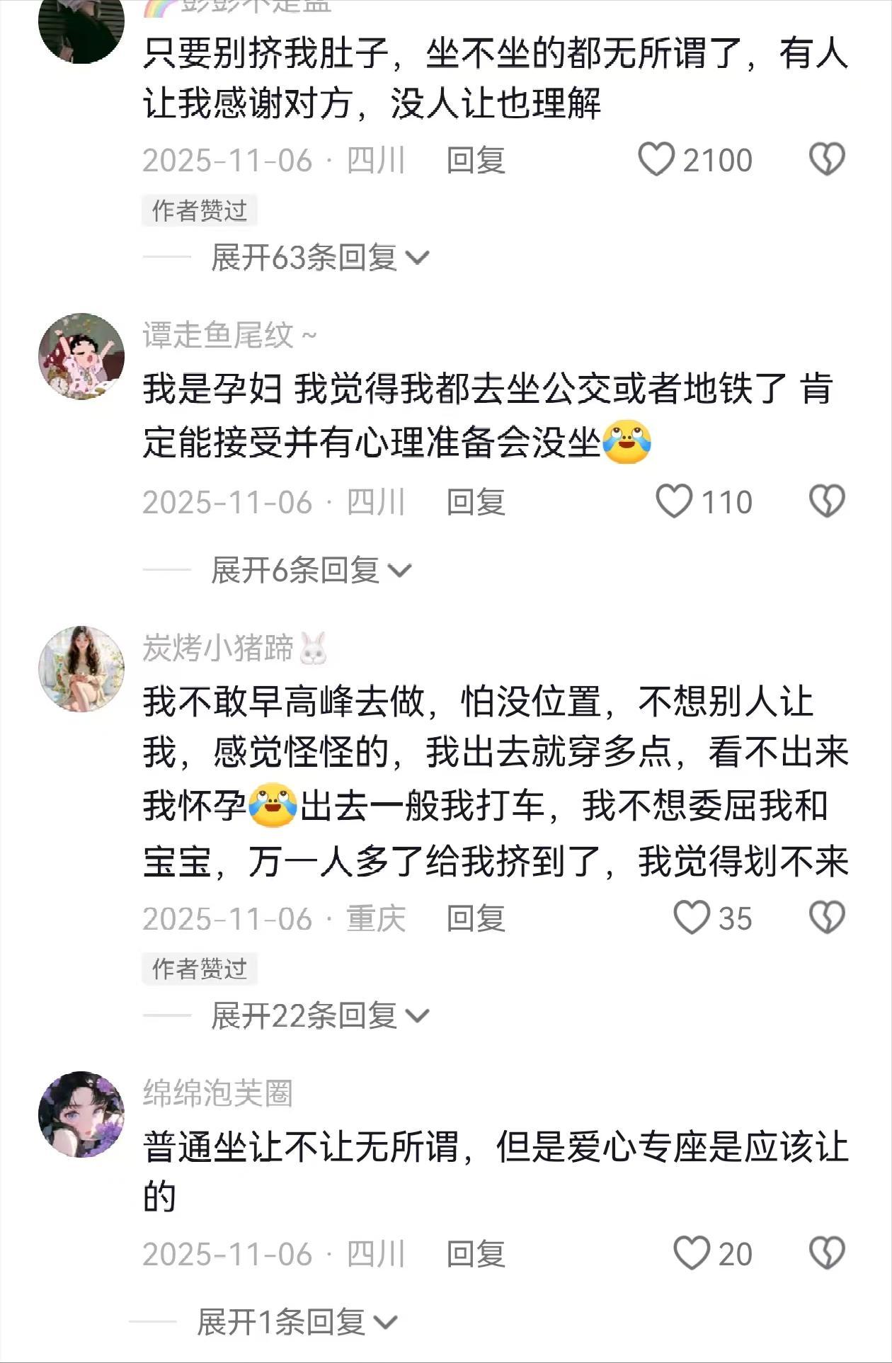這是一條2150條評論的帖子下的真實聲音。孕婦坐地鐵沒人讓座,每隔一段時間就上一次熱搜。有人罵“世風日下”,有人說“都不容易”,更多孕婦自己說:“別擠肚子就行,坐不坐無所謂。”