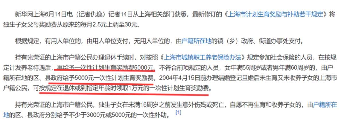 各地標準不一樣,北京獨生子女父母退休時,每人至少能領1000元一次性獎勵,年滿60歲後,每月還能再領120元養老補貼。有的地方按年發,上海等地補貼更高,甚至能過萬。