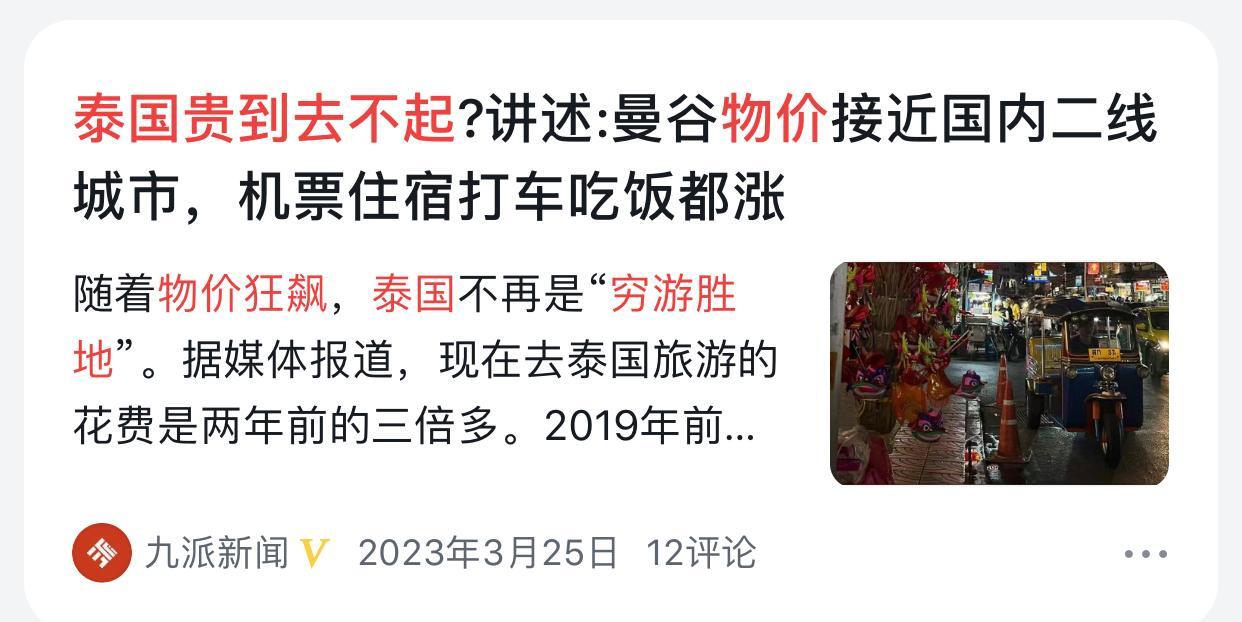 今年泰國旅遊業物價較疫情前有所上漲,中國第一批和第二批出境遊遊客剛到泰國,很多遊客表示物價確實比以前高很多,當時網上官媒有報道,說如今泰國物價讓你窮遊不起了,這也是一個原因,後面泰國旅遊官方又作出說明,會平衡物價,元旦節有很多中國遊客從泰國旅遊回來表示,今年物價稍微高點,但是還是不算貴,能接受得了,在預期消費範圍內。
