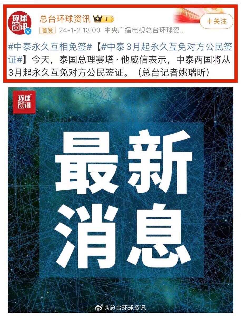 2024年1月2日,新年第二天,環球總檯諮詢發佈一則好消息,泰國與中國在旅遊業邁出了歷史性重要的一步,泰國總理(賽塔,他威信)宣佈稱:從2024年3月1日起,中國與泰國兩國遊客實現永久免費簽證,這一則消息出來,在朋友圈旅行平臺已經刷屏了。