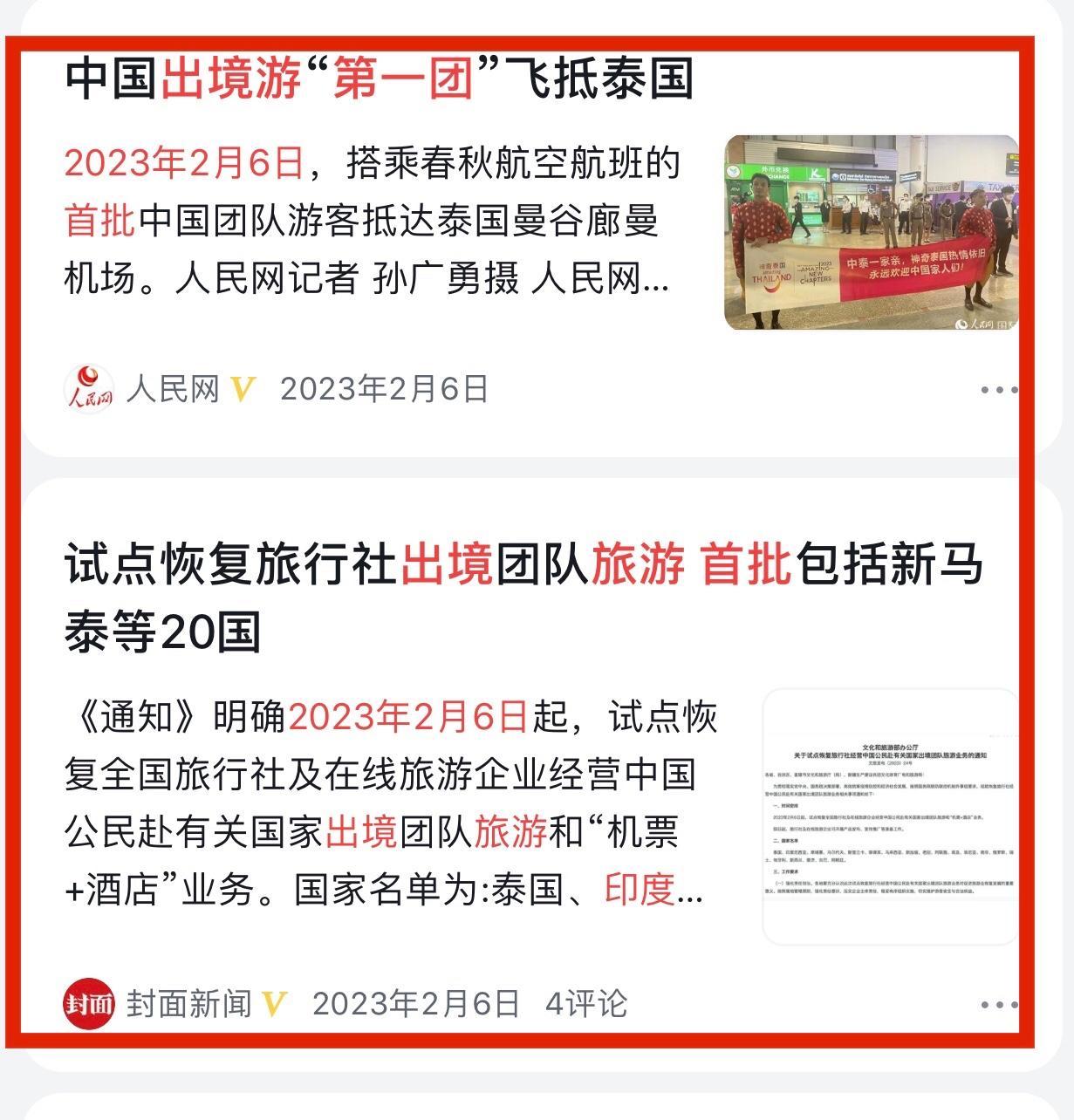 中國出境旅遊是2020你疫情爆發之後按下暫停鍵,一停就是3年,2022年底宣佈疫情結束,2023年2月6日開放出境遊第一批旅行團,第一批旅行團抵達泰國,泰國官方舉行歡迎儀式,還有總理親自到機場迎接中國旅行團,爲中國遊客送花。