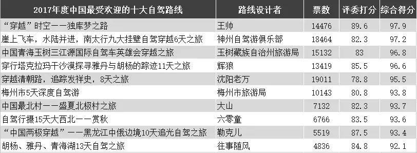注:網友票選時間爲15天,專家評委評選結果在票選倒計時前5天公佈以便爲網友票選白熱化加一把火。專家評委由30人組成,成員由業內專家、旅行達人、旅媒記者、自駕達人、資深吧粉等(以個人身份)組成。