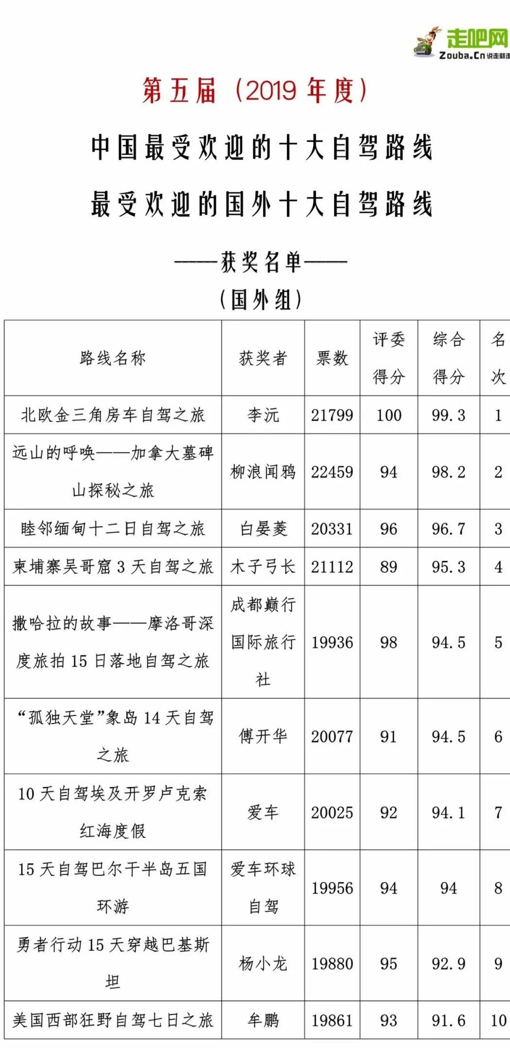 寫在前面:走吧網2016 年元月舉行了首屆(2015年度)"中國最受歡迎的十大自駕路線"評選活動,第二屆(2016年度)走吧網與時俱進積極踐行“一帶一路”國家倡議增設了“最受歡迎的國外十大自駕路線”微信票選活動以來,連續8年來不斷完善賽制深耕雙十大系列評選IP,獲得各界高度讚譽!