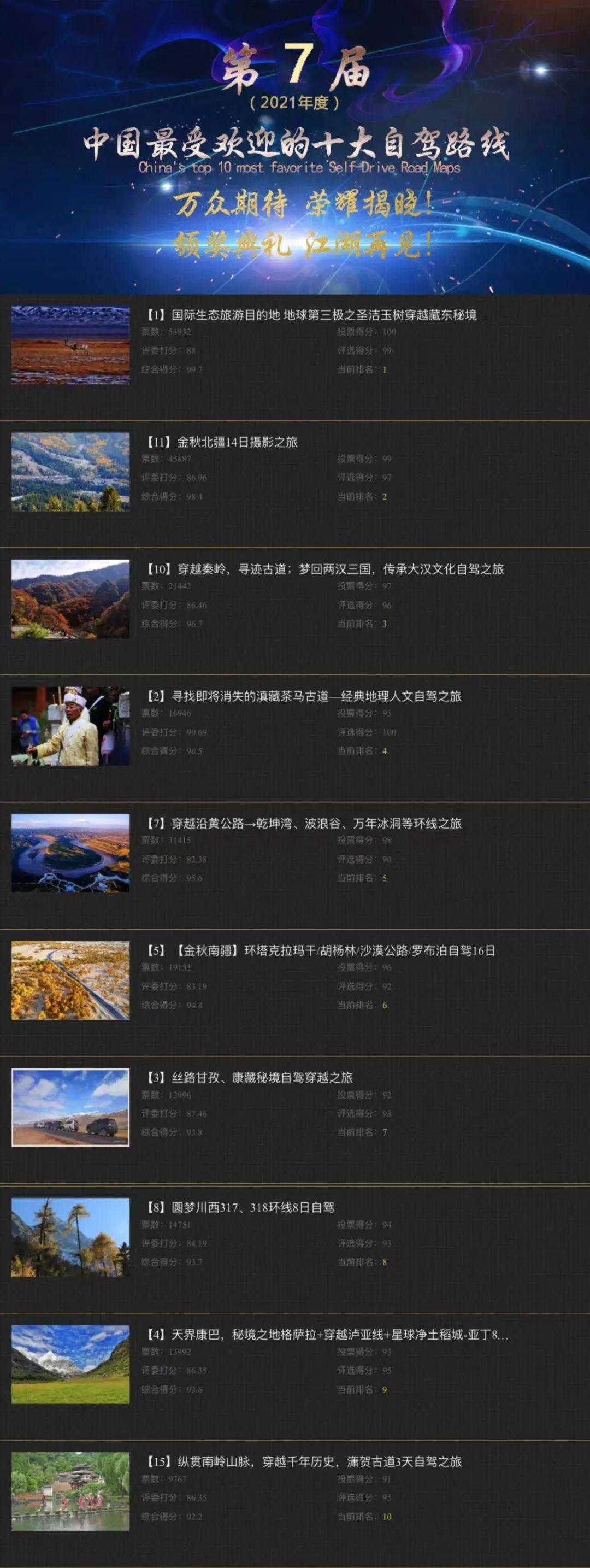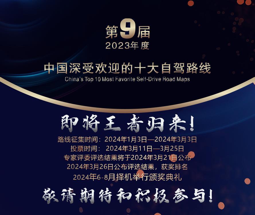 注意:入選“中國深受歡迎的十大自駕路線”獲獎選手免費參加頒獎典禮及承辦地落地自駕體驗活動。
