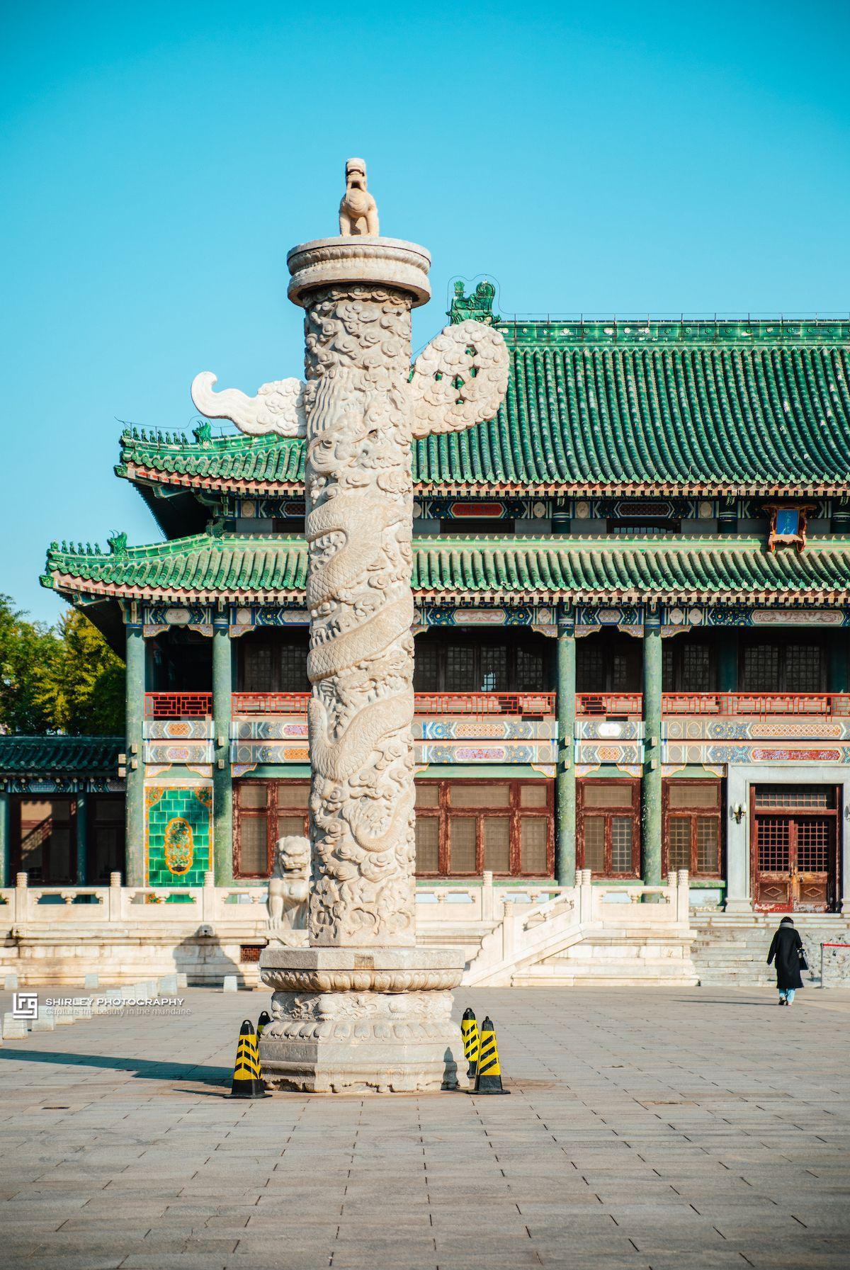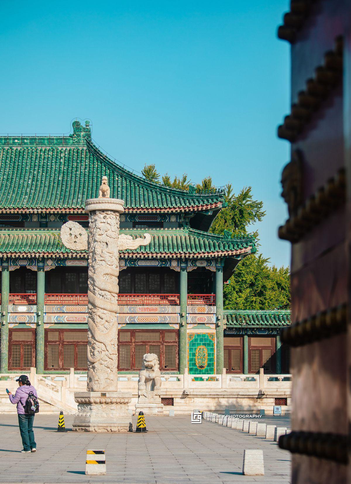 除了建築,總體佈局疏朗的廣場也很有看頭。主樓前的石獅來自恆親王府;院內8米高的漢白玉石雕華表是初建時從園明園安佑宮搬來的;主樓前的蟠龍石刻臺階原先是正大光明殿的臺階,依舊栩栩如生。有了舊物的點綴,顯得整個院落更爲底蘊深厚,不單單是一座圖書館了。