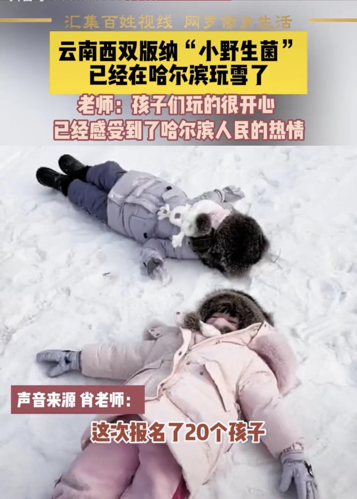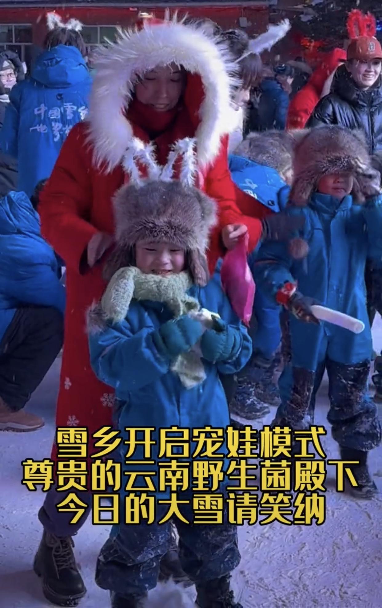 雲南小野生菌們到了雪鄉,第一站就是哈爾濱老鐵先給網友報數,20個野生菌一個沒少,爲了好清點野生菌們人數,小野生菌服裝也換成了統一性的,(男生穿藍色衣服和褲子,女生穿紫紅色外套衣服褲子,又顯得格外漂亮可愛)野生菌們在雪鄉玩得比哈爾濱還歡,被雪鄉叔叔阿姨們寵出了新高度,玩雪打雪仗,給小朋友過生日,安排亞布力滑雪、蹦迪、美食、該喫該玩的一個不落下,工作人員叔叔阿姨們給小野生菌穿衣服,戴手套,拉拉鍊,每一個動作無微不至關懷,無不把網友感動得熱淚盈眶,現在雪鄉工作人員都變成遛娃了。