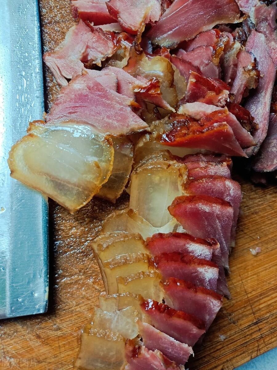 如此做成的臘肉,不僅可以有效防腐保質,而且還產生了另一種鮮香的風味——濃郁的鹹香和甘醇。臘肉一般能一直喫到來年冬天。曾經在新聞上看過有的臘肉可以存放超過十年。