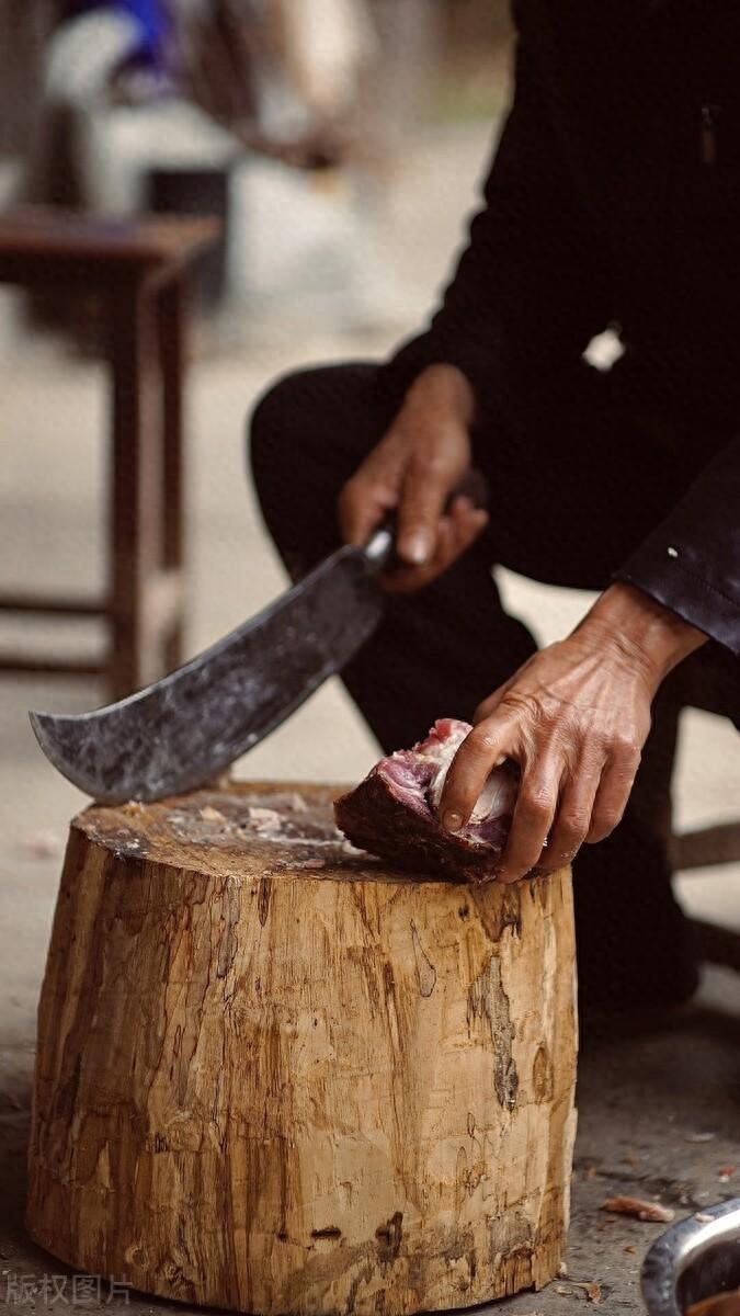 老家入冬後,天氣寒冷,鄉下人慣用柴火取暖。成串成串的臘肉,便懸於柴火上方,接受煙火的“薰陶”。要喫的時候,提菜刀斬下一塊來,和米粒一起蒸煮。