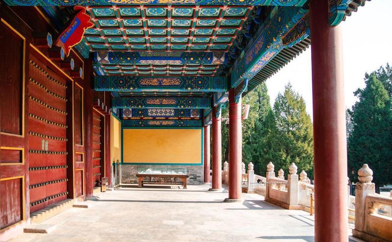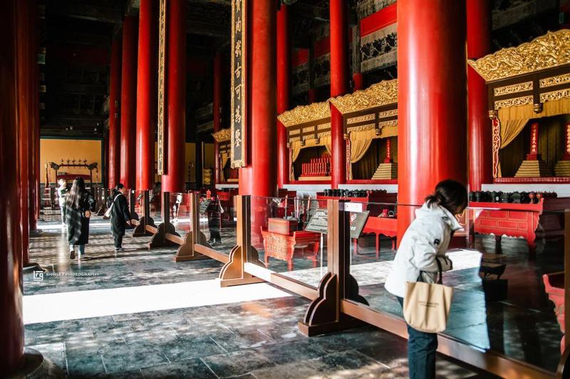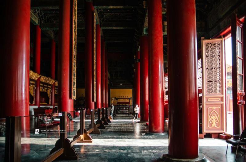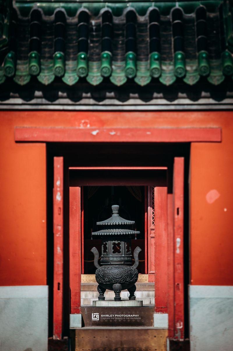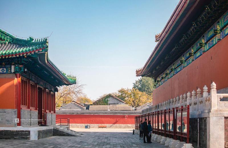 這裏比有着“京西小故宮”之稱的萬壽寺更像故宮,主殿景德崇聖殿重檐廡殿頂,金瓦紅柱,漢白玉須彌座臺基,與故宮太和殿完全是一個等級,更有着故宮都沒有的60根金絲楠木立柱。尤其是站在殿前,一些角度拍出來真的有故宮即視感。而比起故宮,這裏工作日的遊客少得可憐,不用預約就能直接入內參觀。