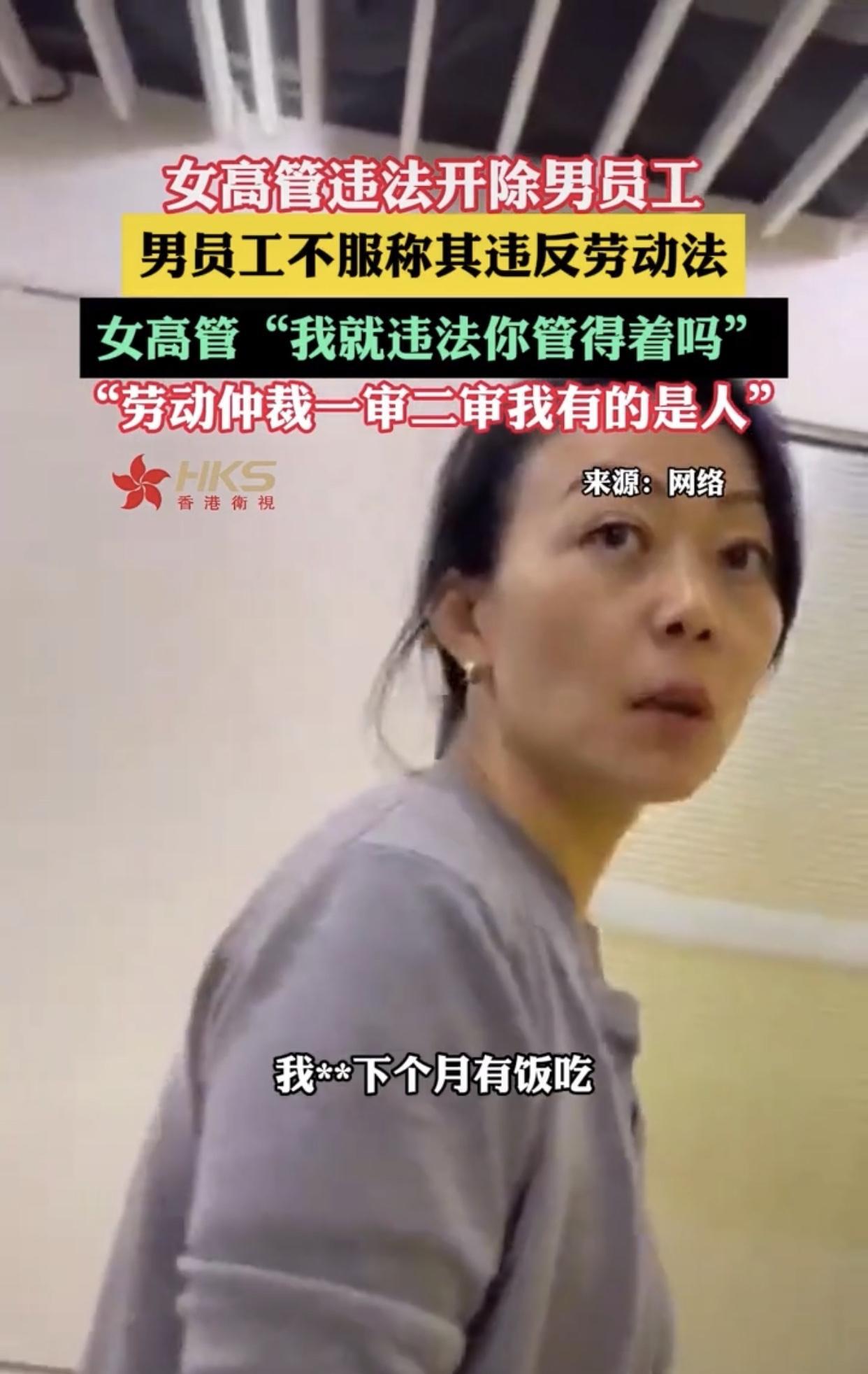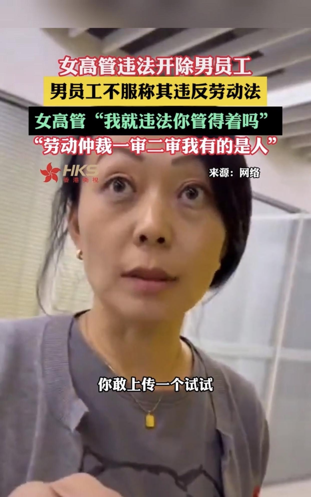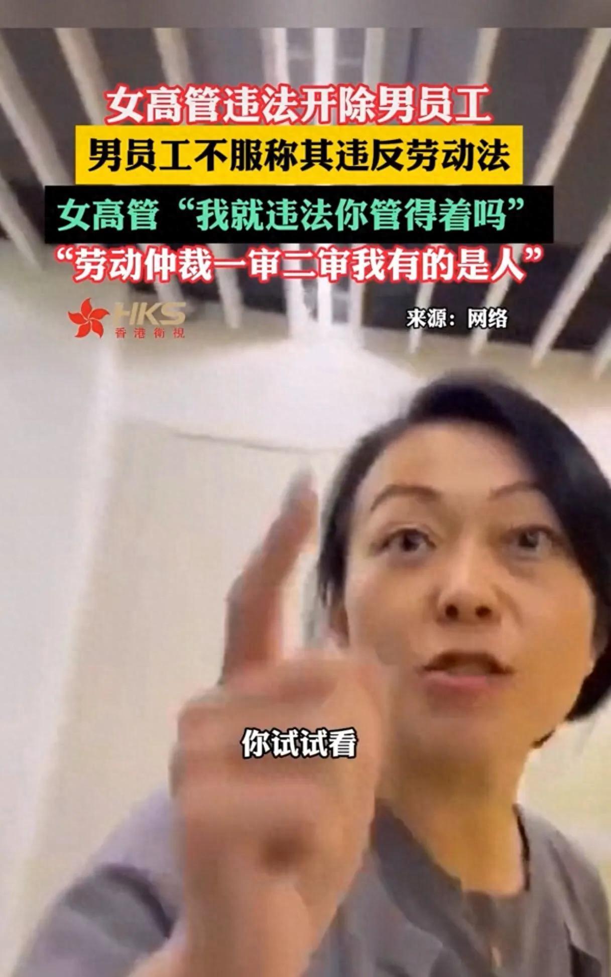 2024年1月8日,一則網傳視頻瘋傳,就是北京某公司一名女高管解除公司員工視頻,女高管(HR)態度囂張指手畫腳對員工說,你現在就走,我現在違法解除你,員工說我要走勞動總裁起訴你,女高管說,我已經說得很明白了,我是違法解除了,你聽不懂人話嗎?你趕快走,不走我叫人趕你走,女高管還威脅說,我就讓你兩年內找不到工作,我現在解除你所有公司權限,你打官司,我有的是時間,有的是人,勞動總裁,一審二審我慢慢等你,不信你試試看,如果你敢發視頻,我馬上打(幺幺零)告你。