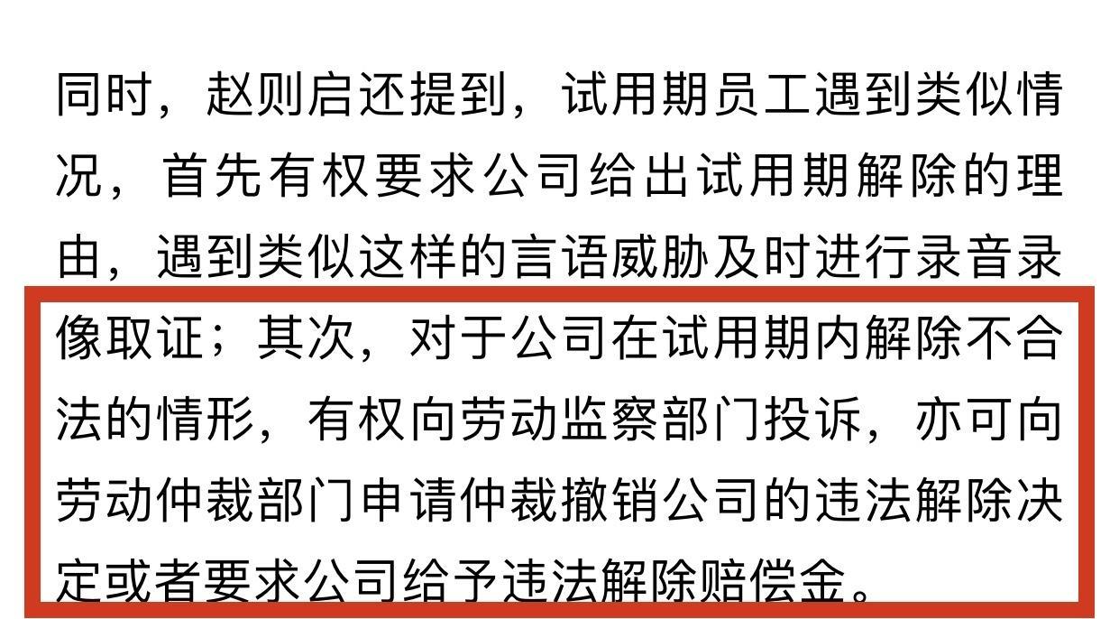 你對試用期求職不合格被公司解除勞動關係,有何看法?你在求職生涯中有沒有被公司簡單粗暴解聘過,歡迎留言討論,關注我,每天分享不同世界。 #女高管違法開除男員工並辱罵威脅#
