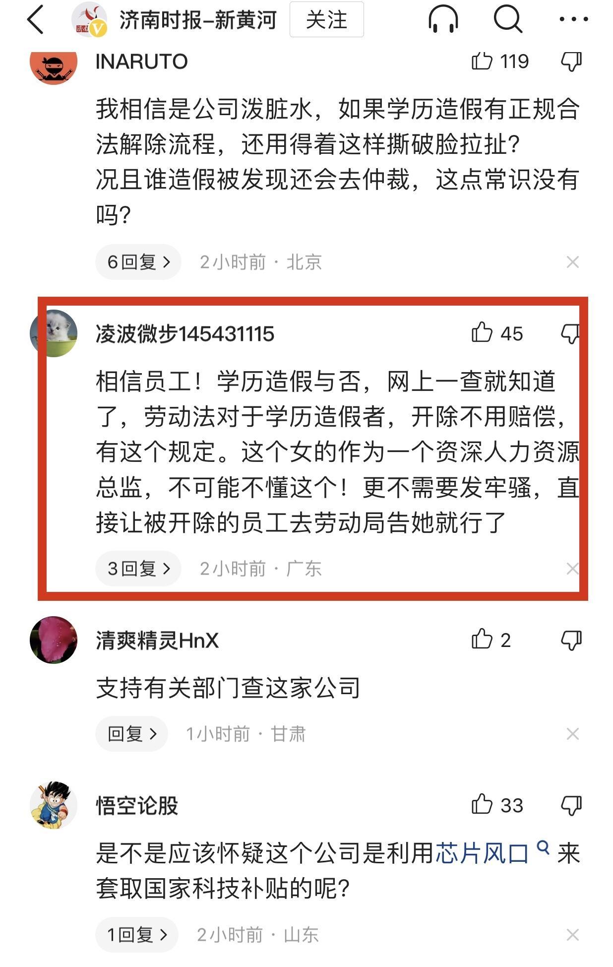 然而根據黃河時報消息:員工(孫某)他說公司說他學歷造假,這是公司給他潑髒水,他說開除他時候沒有說他學歷造假,現在事情發酵了,就說他學歷造假。