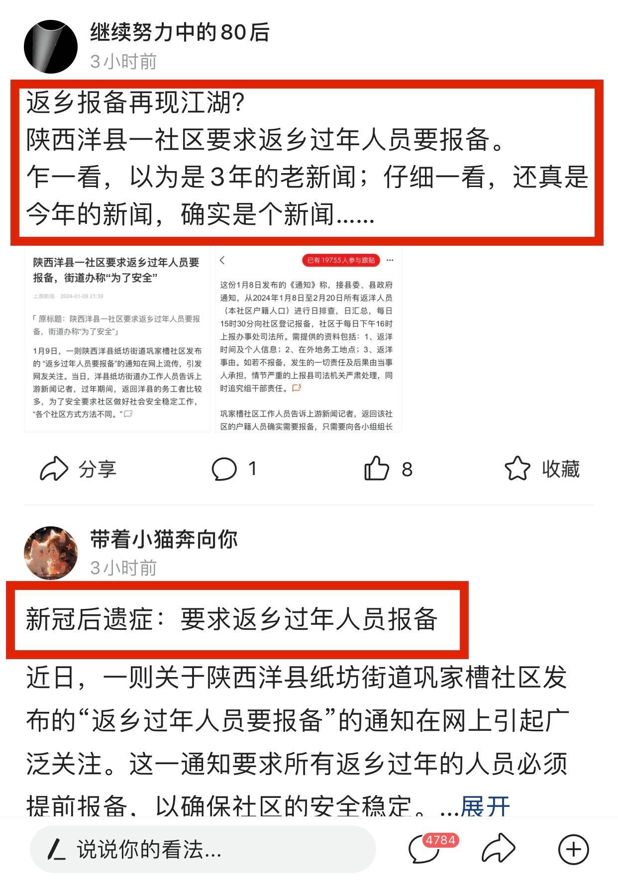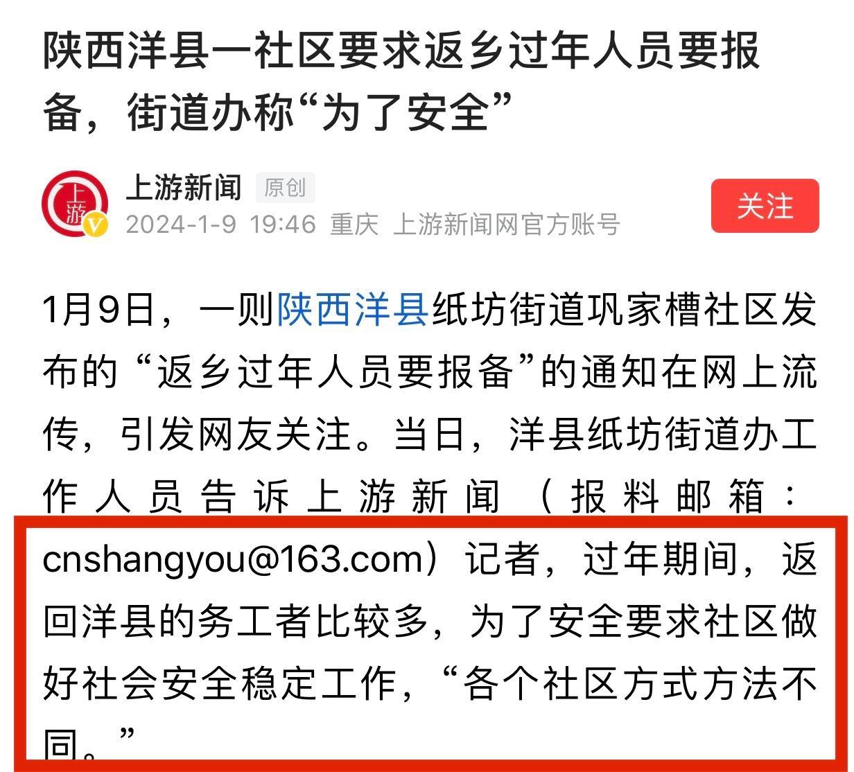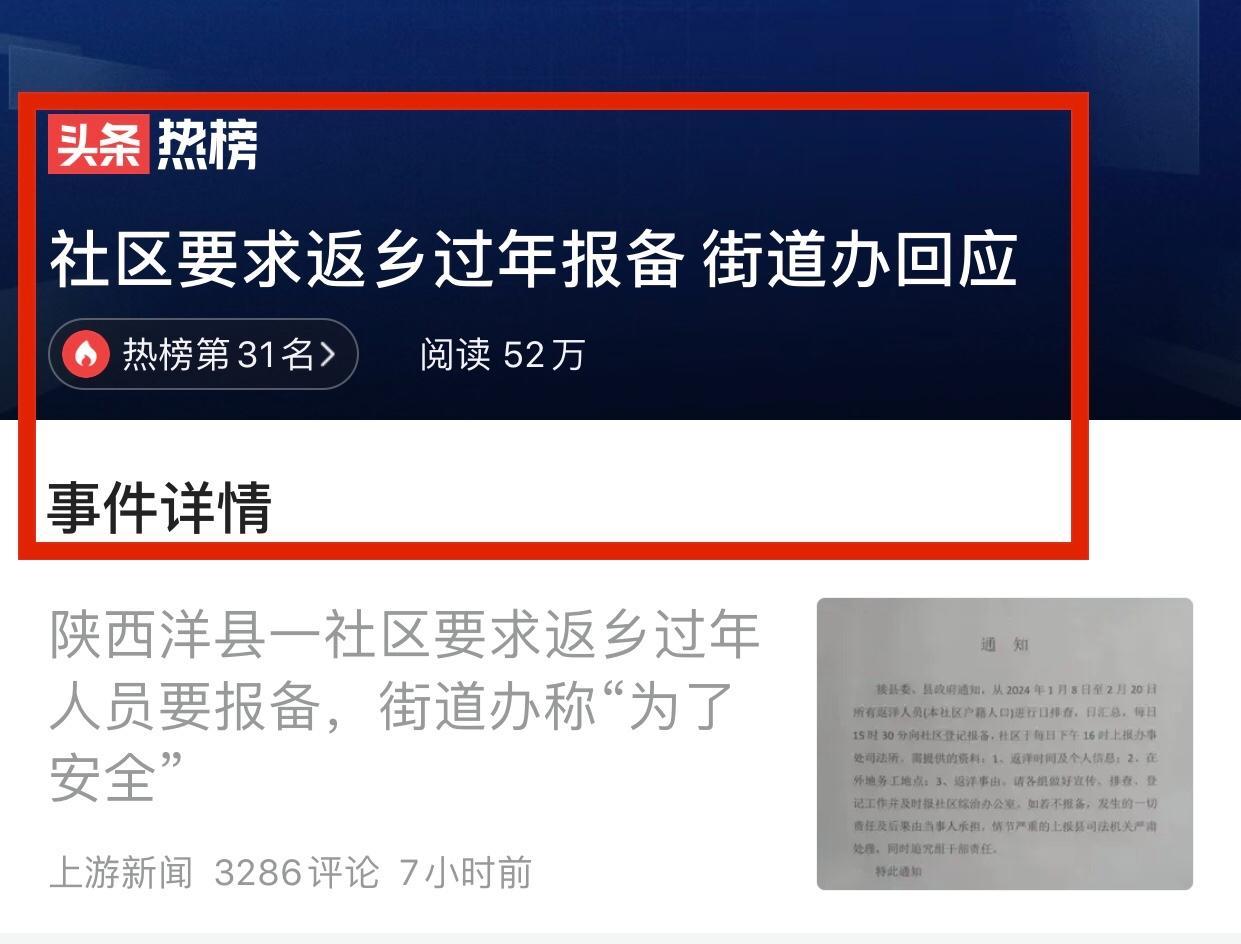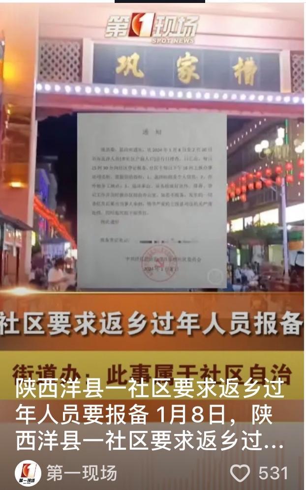陝西洋縣返鄉過年人員要向社區報備,網友留言:這又咋回事了?