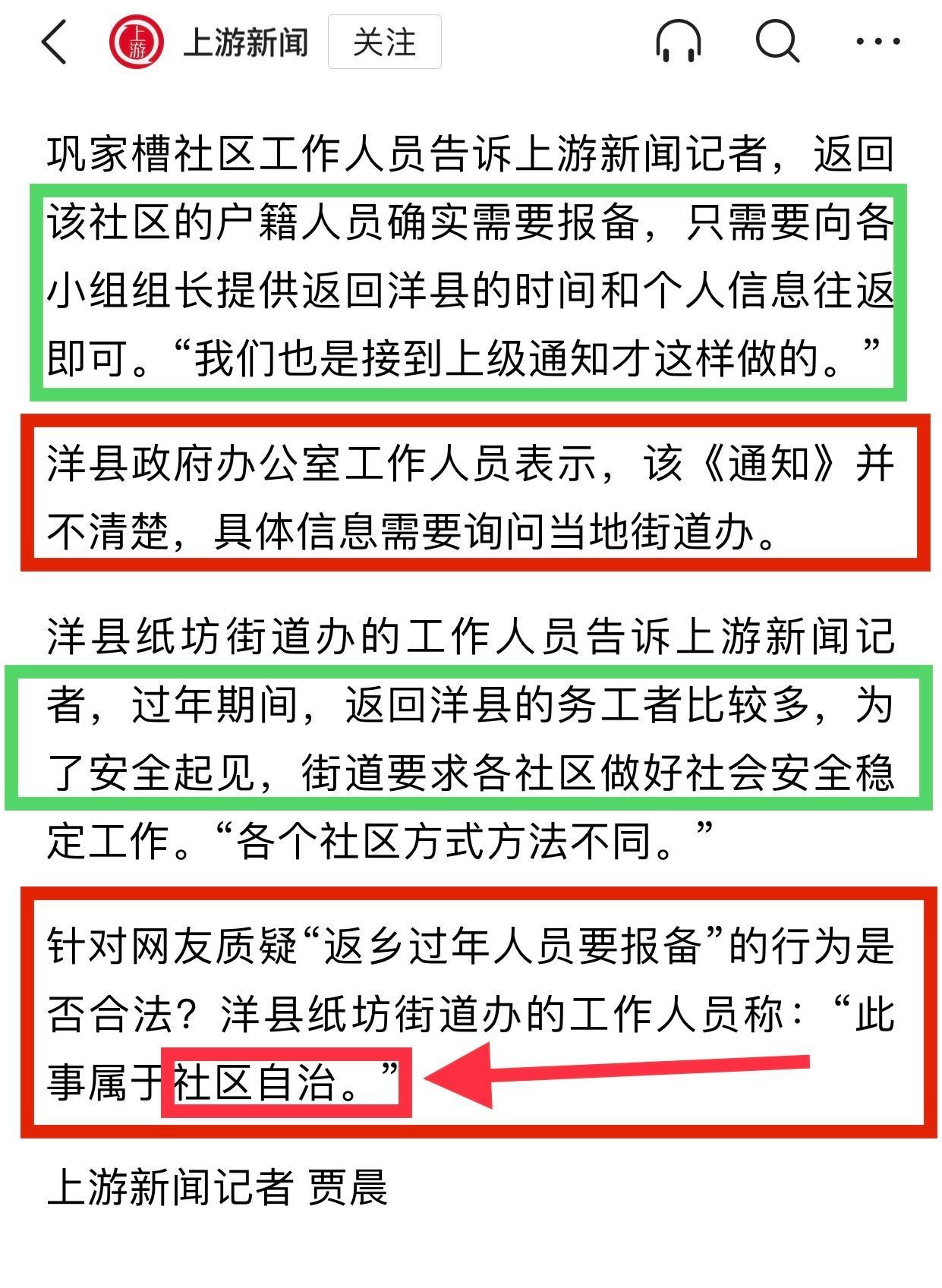 文章中提到,是接到當地縣委,縣政府通知,要求這麼做,根據《上游新聞》1月9日報道,當地縣政府工作人員稱並不知道有這個通知,具體情況問鞏家槽社區。