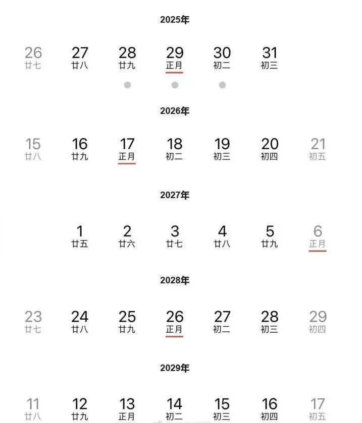 因爲從2025年開始直到2029年,連續五年的除夕,都是“大年二十九”。