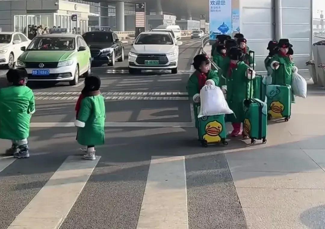 2024年1月11日,一羣身穿綠色軍大衣小朋友,頭戴雷鋒帽,人手一個行李箱外加一個尿素編織袋,出現在山東某機場,被網友拍下,突然火了,這個着裝,網友看了這個着裝,這哪是去研學,網友調侃土裏土氣的,主打一個闖關東,直接把網友笑噴在評論區,這羣小朋友萌萌可愛,不亞於雲南野生菌,和廣西砂糖橘們熱度,老師也沒想到會走紅。