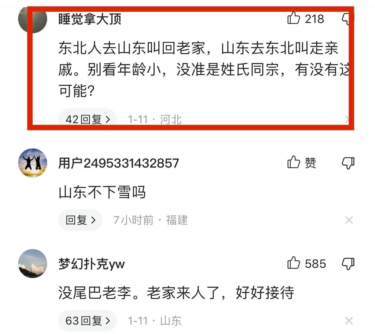 2、東北人去山東叫回老家,山東去東北叫走親戚。別看年齡小,沒準是姓氏同宗,有沒有這可能?