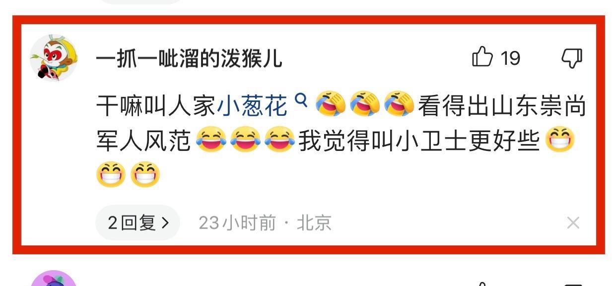 3、幹嘛叫人家小蔥花,看得出山東崇尚軍人風範,我覺得叫小衛士更好些。