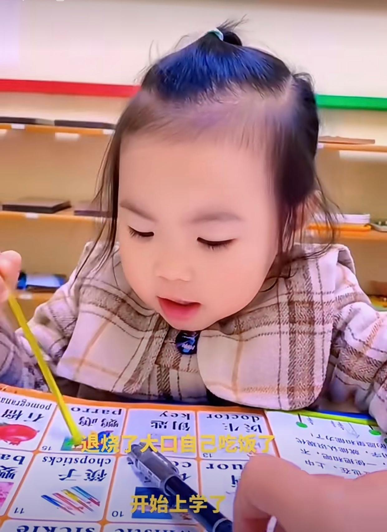 風寒感冒,小孩子很快就會恢復,如今看到有媒體發視頻,橘三歲(清亦)小妹妹已經恢復健康,乖乖喫飯、一臉幸福洋溢的笑容,開始學習上課啦,網友們都希望橘三歲這段難忘研學旅行經歷,好好讀書,長大了能考取哈工大。