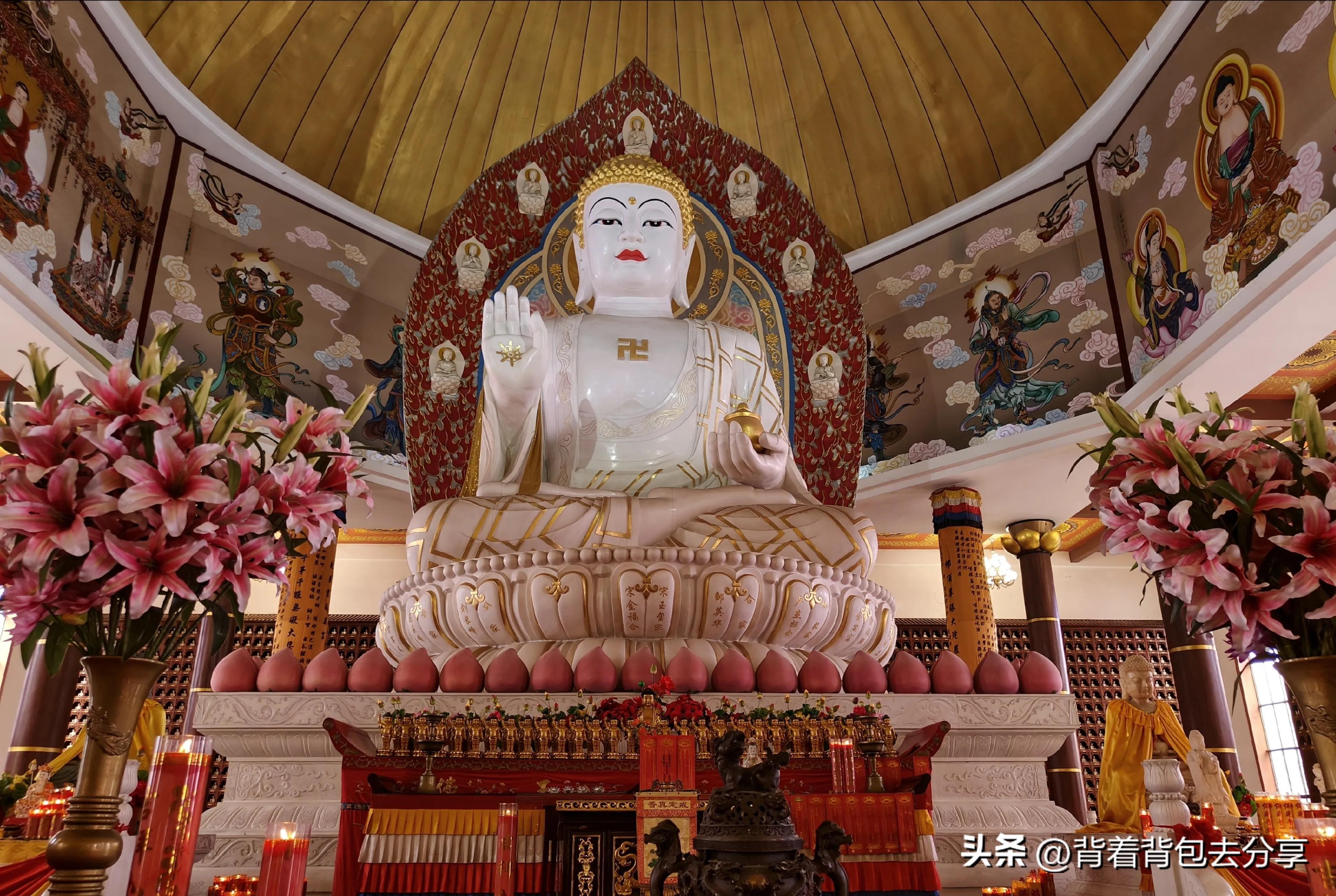 南山大佛,位於煙臺市龍口市,世界第一錫青銅鑄大坐佛,是景區標誌性的景點之一,也有國內最大的室內玉佛,其中,南山藥師玉佛,已成爲景區中的亮點,整個園區主要以歷史文化爲經,吉祥文化爲緯,按朝代順序建設的歷史文化園,宛如一部鮮活的中國通史,全面展現了中華文明的博大精深和民族文化的多姿多彩