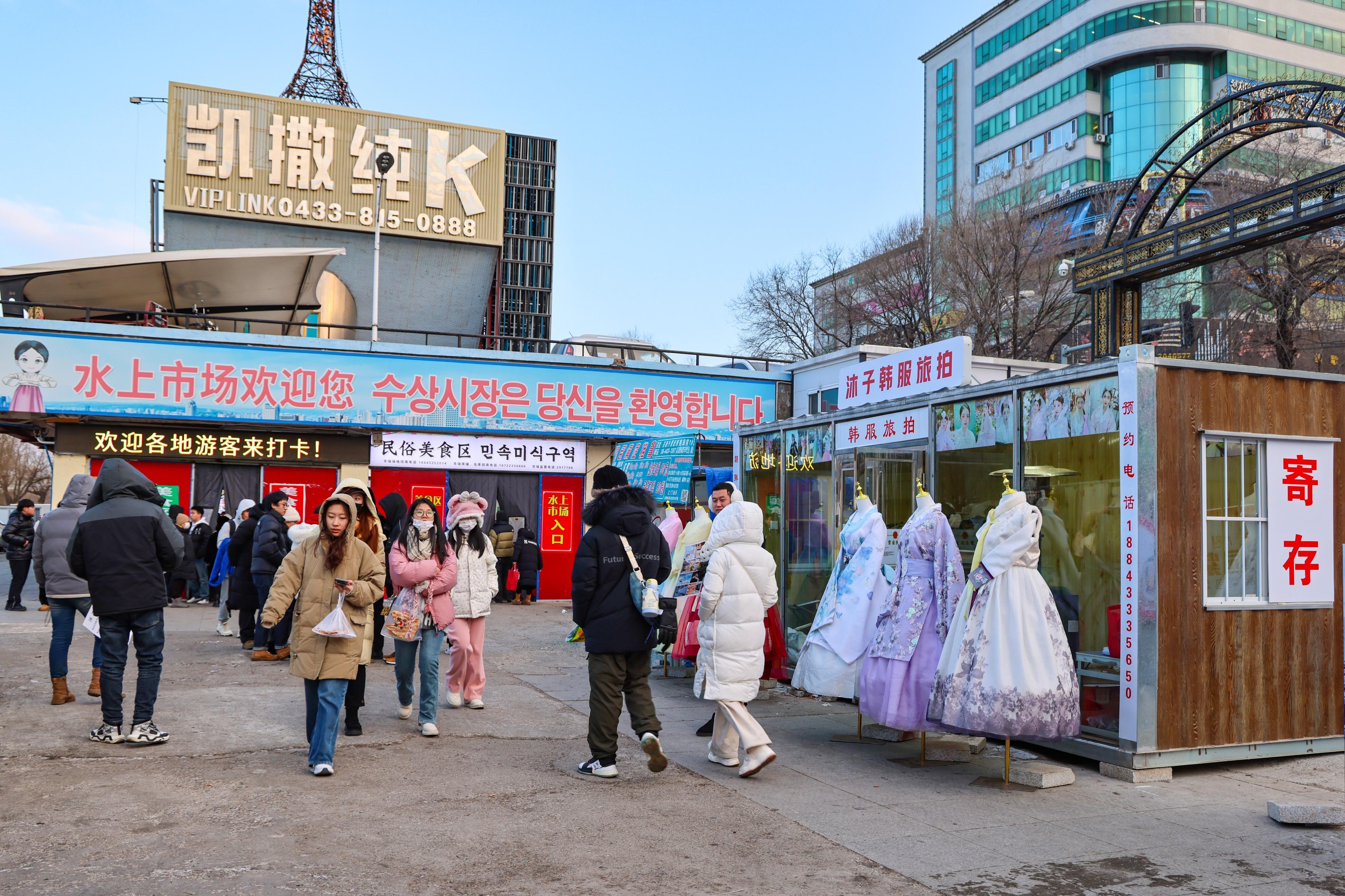 東方水上市場位於吉林省延吉市延吉河河畔,主要售賣朝鮮族特色美食,是延吉最大的早市。隨着延吉旅遊的知名度不斷提升,各地遊客紛紛前來打卡,品嚐清甜的米酒、酸甜適口的泡菜、軟糯的炒年糕等朝鮮族美食,感受濃濃的煙火氣。