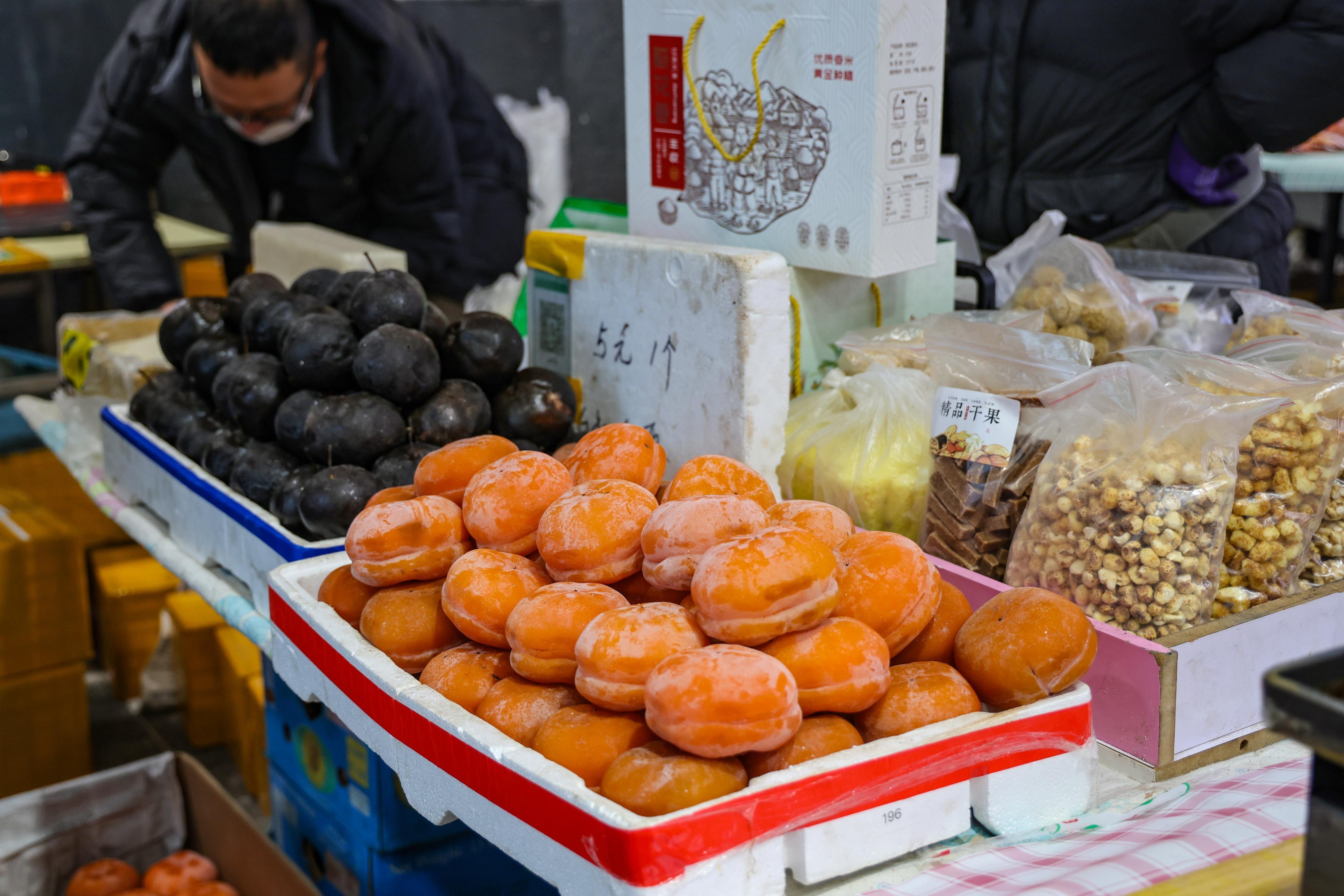 延吉東方水上市場裏的凍梨和凍柿子 記者 曹雪文 攝