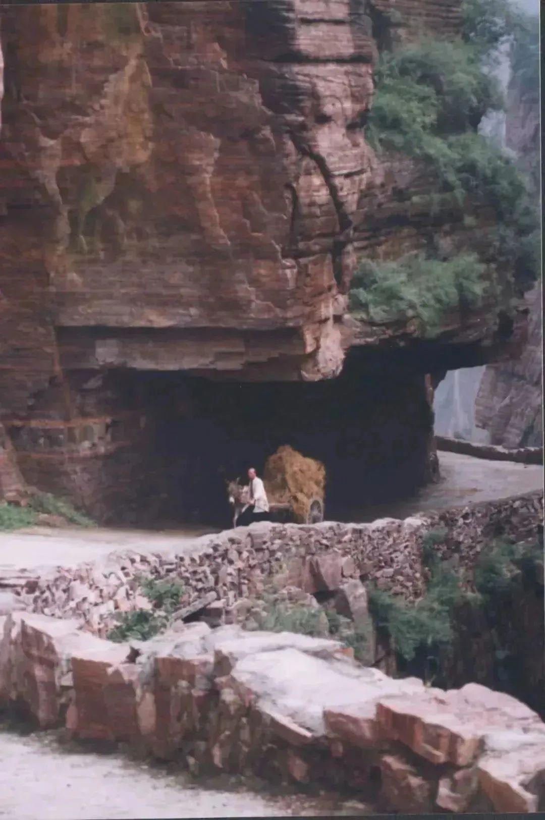 1968年,平順縣芣(fú)蘭巖鄉全鄉800名村民,自帶被褥,喫住在工地,用鋼釺、鐵錘等最原始的工具,從梯後村的北山崖中挖了五個涵洞,劈掉七座山嶺,填平三條大溝,打通了這條崖中公路,掛壁公路在太行絕壁之上連鑿5個山洞,且最上面的洞和最下面的洞落差約有200米左右。
