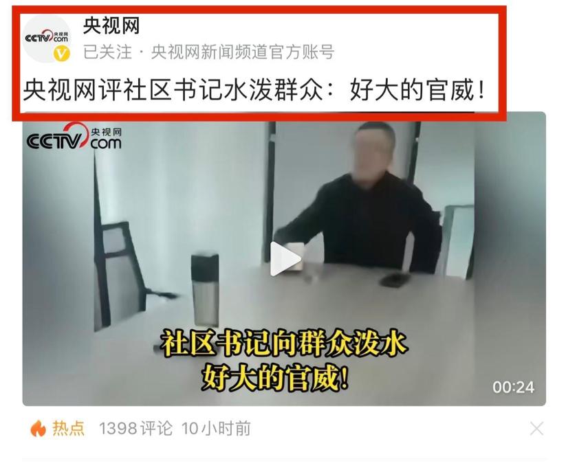 官方說了,這是個人恩怨經濟糾紛,也驚動了央視權威媒體,評價好大官威,這明顯可以看出,社區書記仗着自己官職,不爲雙方經濟糾紛解決問題,就公權私用威脅壓迫對方,說服不了就動粗,不解決問題,而是解決提出問題的人。