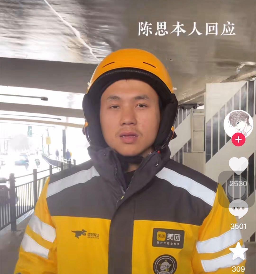 2024年1月15日晚間,外賣小哥陳思面對大衆質疑,官方媒體《瀟湘晨報》直播連線陳思,他說這個行業很危險,面對自己做這麼多單,他奉勸別人不要模仿,這是拿老命在拼,如果某天說不定一下子自己就沒了,他說他送外賣之所以這麼拼命,主要是負債累累,沒有別的出路選擇,他說以後不送外賣了,會選擇再次創業,如果再創業失敗,他會選擇擺地攤開始新的一個起點。