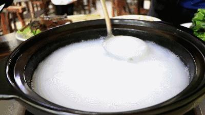 做好的毋米粥,還可以當作毋米粥火鍋的鍋底,燙海鮮沒有腥味,燙肉類越燙越嫩,口感一絕。