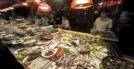 只見,屠宰場邊上的大排檔裏,簡陋的裝潢、雜亂的廳堂、搖曳的風扇、昏黃的燈光下,食客們排着隊,挑選着豬潤、生腸、金錢、大腸、豬肚、豬利……而後開戰似的,把心儀的豬雜交給夥計,好像慢了一秒,粥的鮮甜就少了一分。