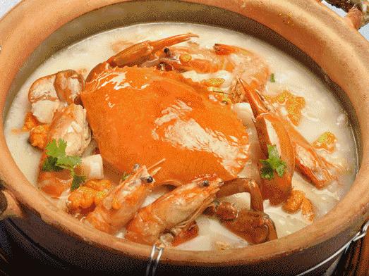 河魚、河蝦、膏蟹、乾貝、人蔘、蟲草、沙螺、油雞、鱔魚、山羊、黃牛、水蛇......天上飛的、水裏遊的、地上跑的,都逃不過廣東人的熬粥鍋。