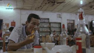 “達叔早晨,照舊豬肝粥?等等我搵(找)下你支紅荔!”