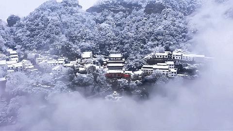 這裏是中國四大道教名山之一,還有着獨特的丹霞地貌、摩崖石刻,和旖旎的田園風光,時常被籠罩在雲海之中,一陣風吹過,雲海迎面而來,宛然一副仙居的模樣。