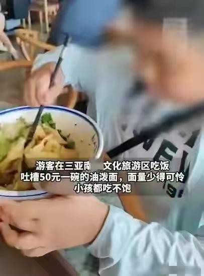 事情起因是2024年1月17日,一位女遊客帶着小孩子在三亞某景區遊玩,根據(法治進行時)官方報道,事發地是三亞南山寺景區,遊客小孩子飢腸轆轆,小孩子媽媽沒有辦法,就在景區給小孩子點了一碗油潑面,結果這碗麪端上來小孩子一邊攪拌大人在邊上問孩子你喫得飽嗎?小孩子直接搖頭,根本喫不飽,這碗麪是50元,從碗跟面就不搭配,一個盆子大小的碗,裏面幾根面墊底,這景區物價有這麼高嗎?