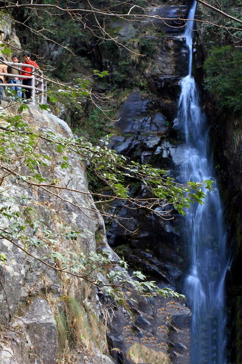 瀑布是明月山的精華,雲谷飛瀑猶如一條巨龍,從懸崖上飛濺下瀉,落差一百多米,經過5級臺階,十分壯麗。