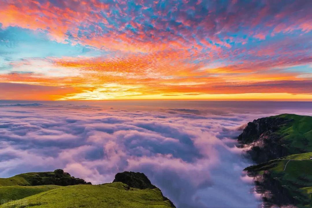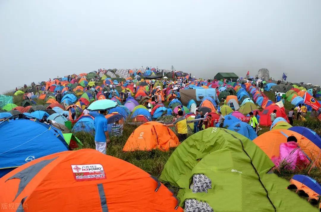 武功山的夏天是一年中最美的季節,高山草甸極美,而且出雲海的概率高,是觀賞日出、欣賞雲海的好地方。山上的帳篷星羅棋佈,每個帳篷都是一道風景,點綴着綠色的山巒。