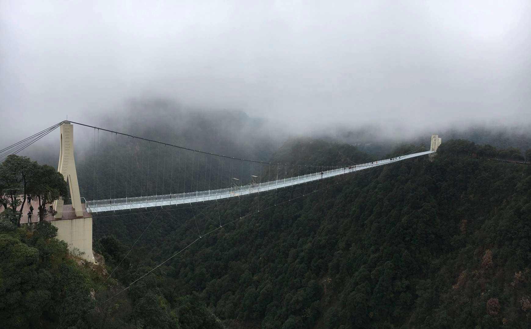 青雲棧道位於烏雲崖峭壁之上,全長約3100米,棧道是懸空的,有些部分用玻璃製成,腳下便是萬丈深淵,因山頂常年雲霧繚繞,行走之上,有平步青雲之感,十分刺激。