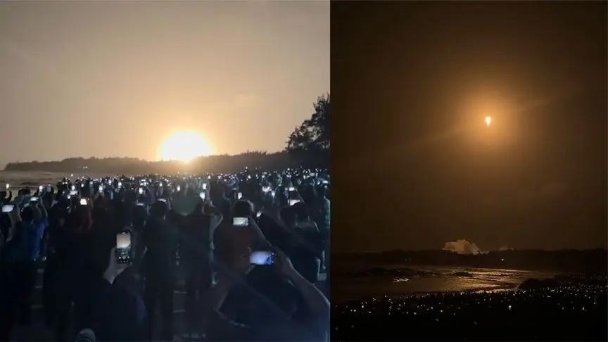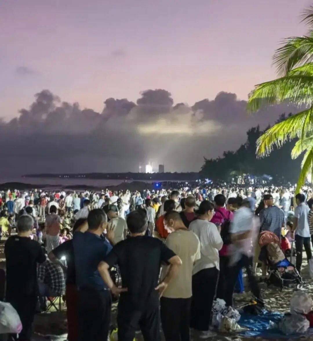 當天舟七號發射的那一刻,現場海灘、周邊已經聚集成千上萬遊客,有普通遊客,也有來自全國各地學生研學團,現場是人山人海,遊客們歡呼雀躍,慶祝偉大勝利,1月17日晚間,當夜幕降臨,萬籟俱寂,星辰點點。突然,一道火光劃破黑暗、直衝雲霄,轟鳴聲震耳欲聾,海灘上的人們仰望着夜空,目光緊緊地跟隨着烈焰的軌跡。不一會兒,強烈的火光逐漸淡成漆黑夜晚裏的一顆星星,融入浩瀚蒼穹,這就是天州七號,天舟七號成功發射,又給我國航天事業邁出了一個偉大征程。