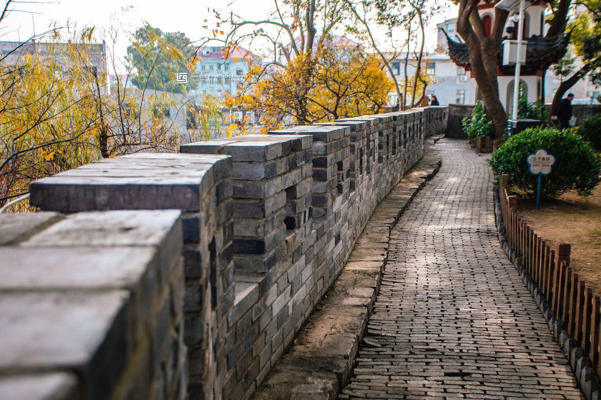 公園不大,最大的亮點就是保存着一段約80米長的明代古城牆。這段古城牆建於1557年,爲抵禦倭寇侵犯而建。據史料記載,建成後的城牆約2公里長,高9米,共有城門4座,東南西北炮臺12座。