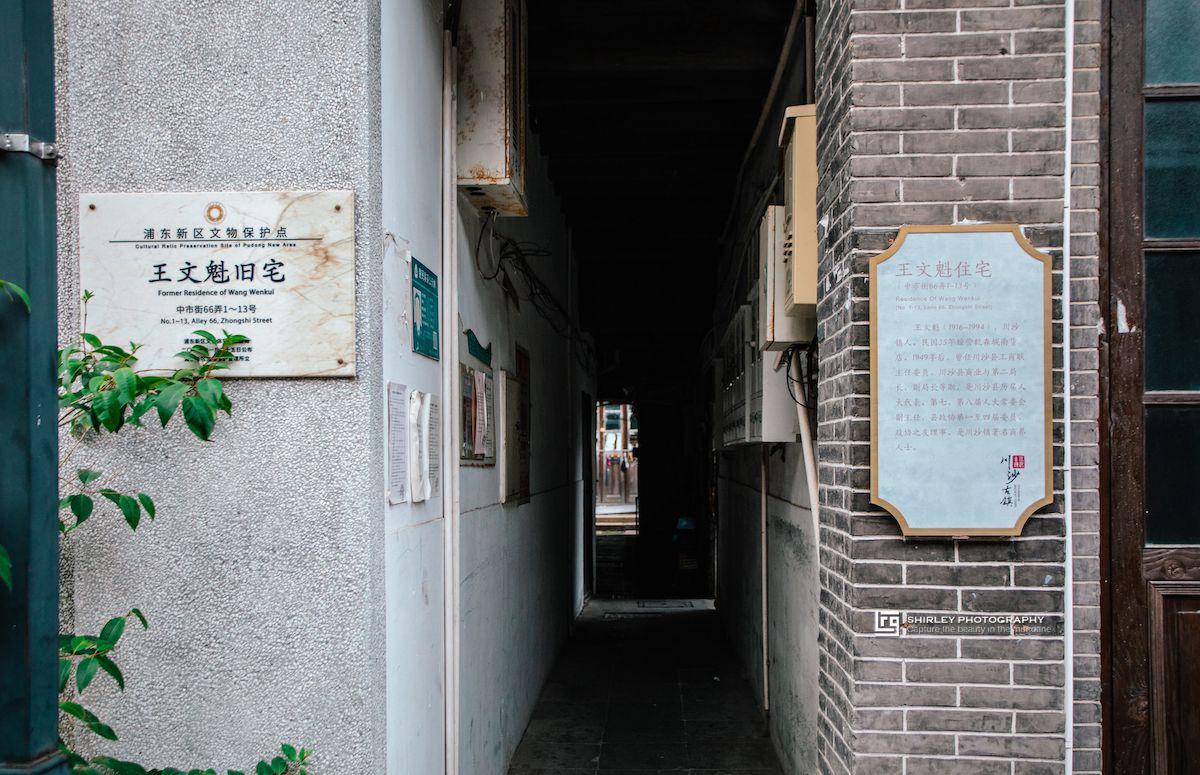 古鎮的沿街建築多爲兩層,一層爲沿街商鋪,多經營書畫古玩以及本地美食等等。二層用於居民住宅,居住着來自五湖四海的“生意人”以及見證老街變化發展的原住民。不少民宅是有故事可講的老建築,比如中市街66弄爲川沙著名實業家王文魁舊宅,內部已經很難分辨過去的樣子。