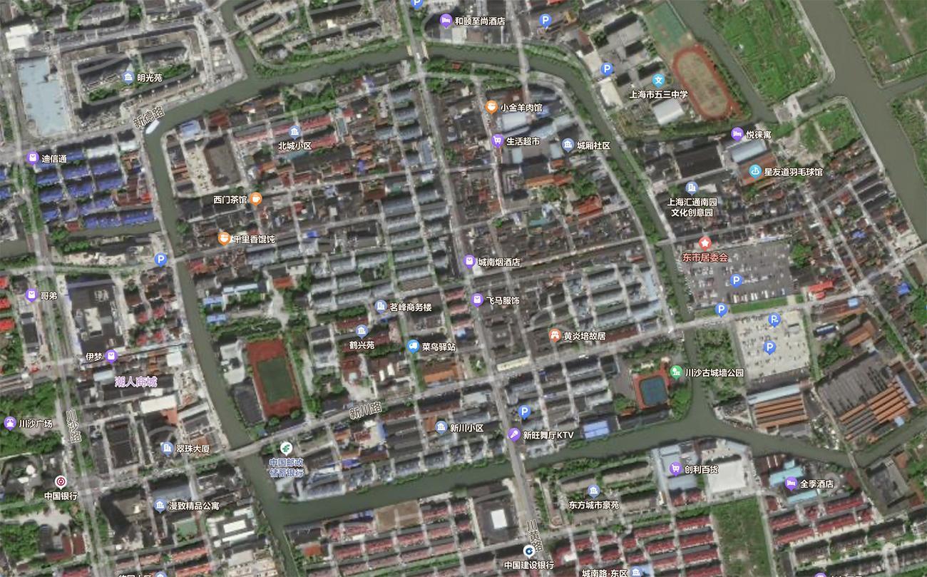 川沙鎮,曾是川沙縣的縣城。如今川沙縣早已消失於歷史的長河中,而因其命名的川沙鎮還在。從建城之日算起,古鎮已有近500年的歷史,是上海市區周邊最古老的縣城之一。而相比嘉定古城的龜背形,青浦老城的長圓形,川沙古鎮卻是上海唯一的四方城池。從空中俯瞰,古鎮的確四四方方,巷弄交錯,被護城河環繞,如同微縮版的蘇州古城。