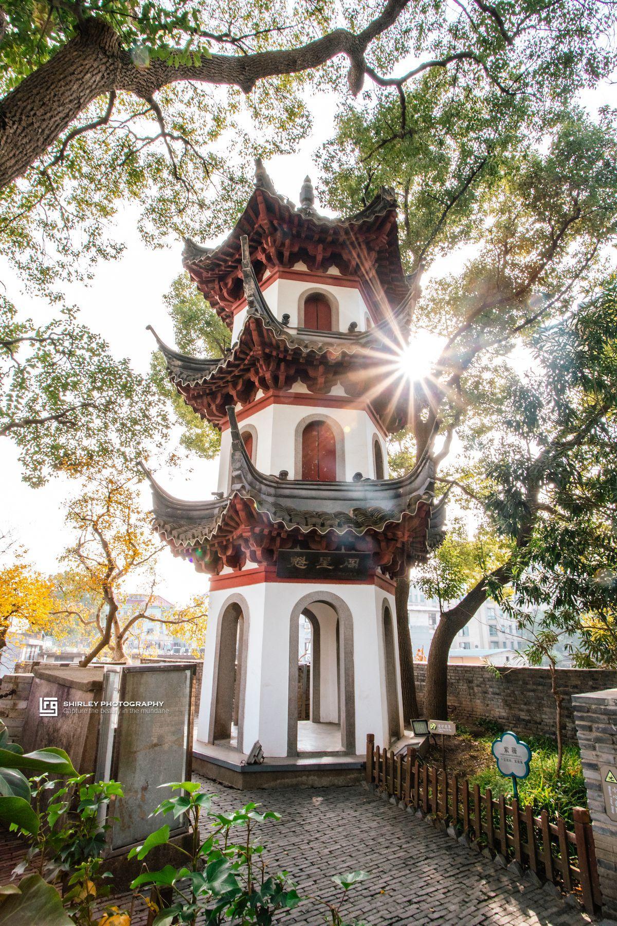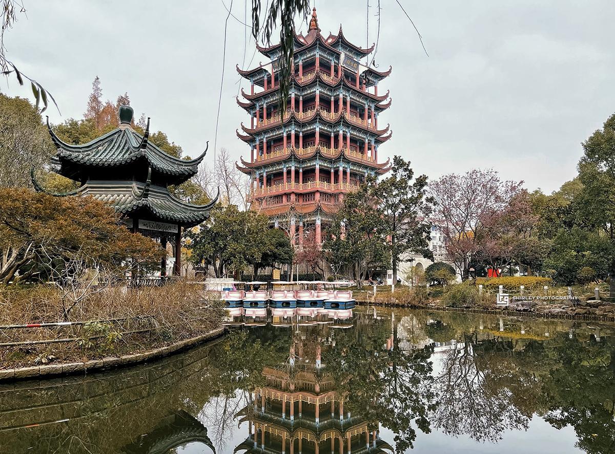 川沙古鎮的行程至此,其實已經相當充實了。如果還有時間體力,可以去距離川沙古鎮西南角不遠處的川沙公園走走,公園與古鎮隔護城河相望。這是一座古典園林式的公園,裏面有按照黃鶴樓仿建的鶴鳴樓,已是川沙的地標。可惜目前不開放登樓,不然可以俯瞰整個川沙。