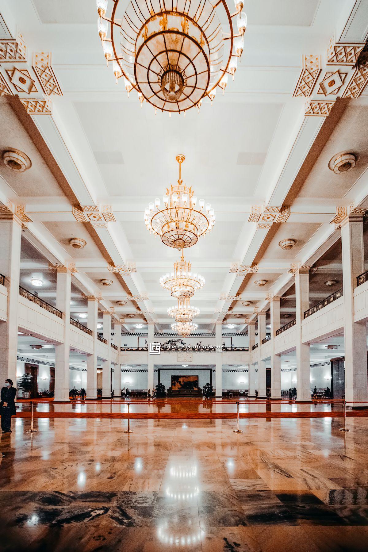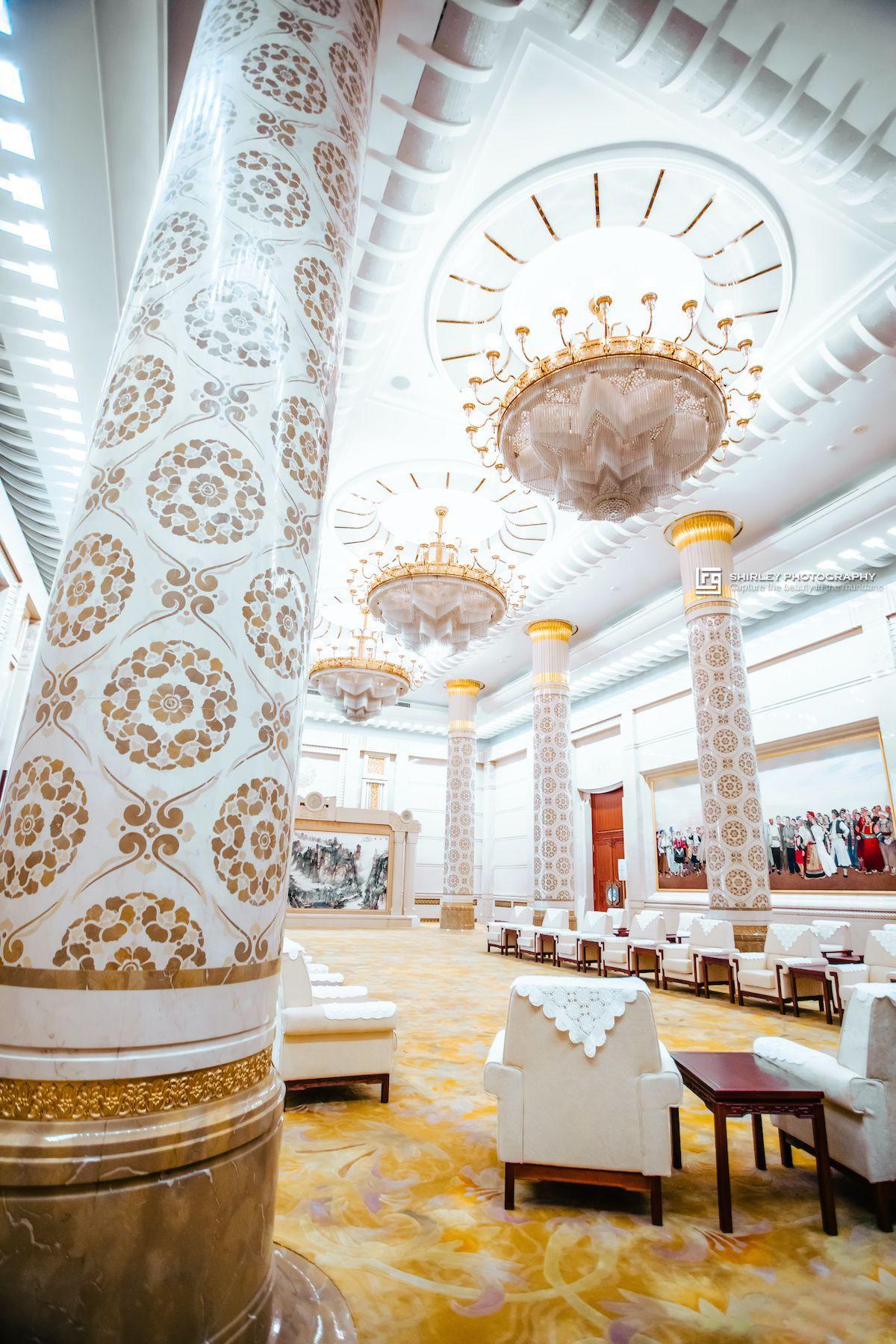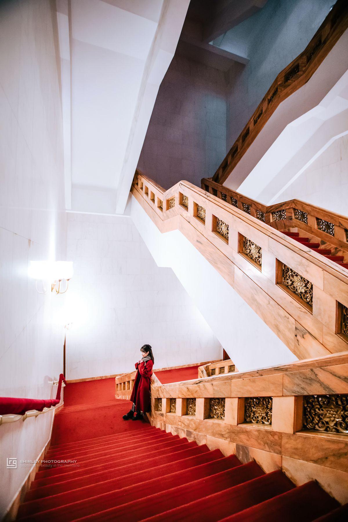 但是大禮堂只開放了二樓中間走道,如果想拍到頂上五角星需要藉助自拍杆。我的單反相機沒法裝自拍杆,拼盡全力也只能拍到這個程度了。