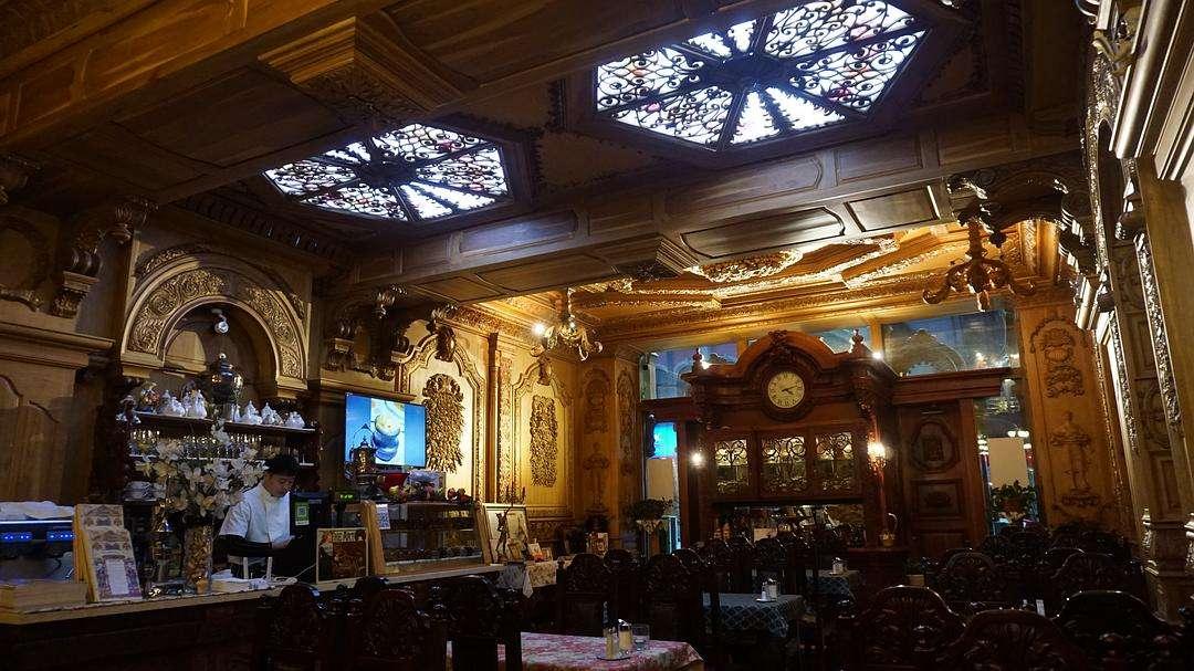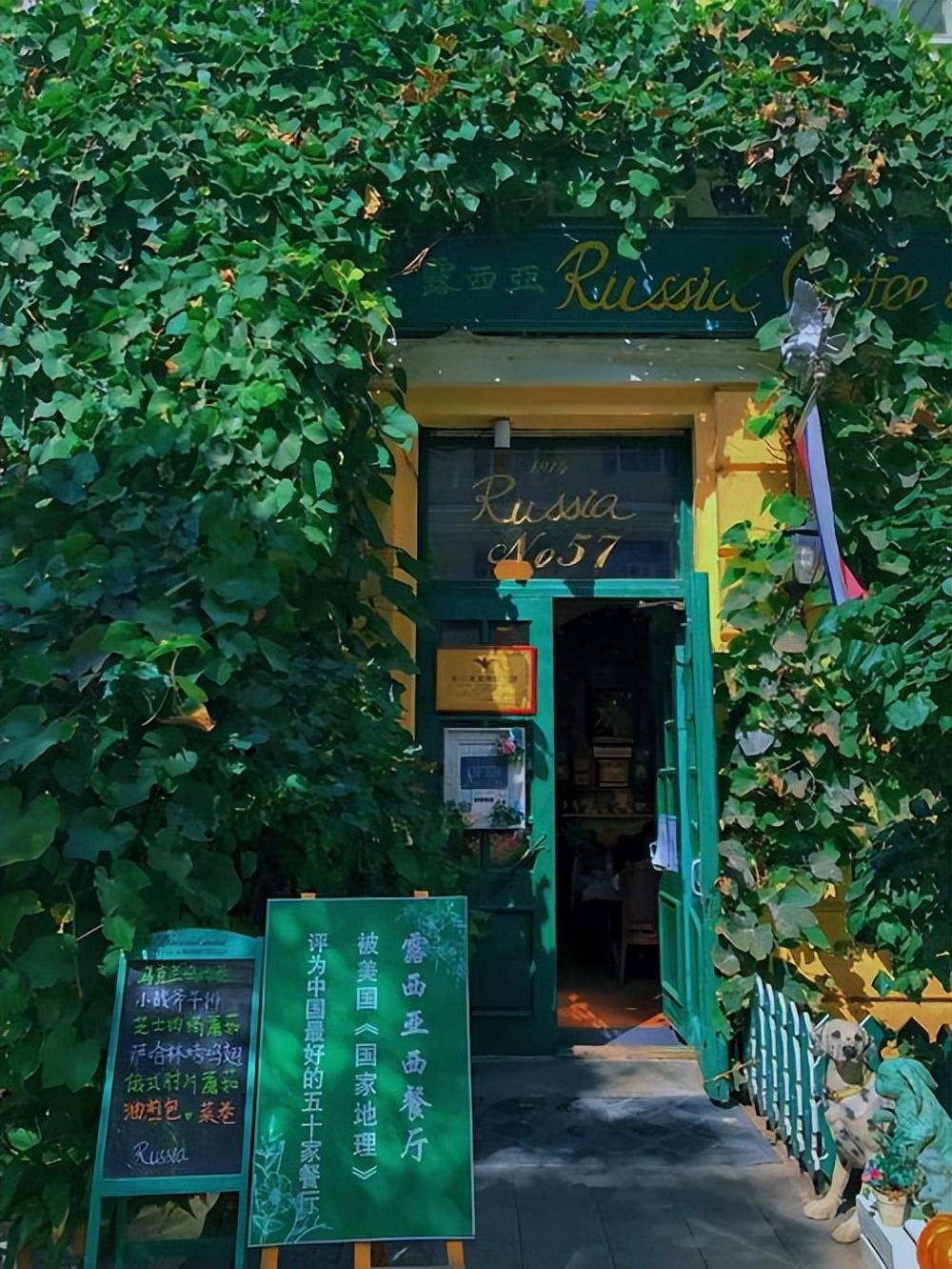 露西亞西餐廳,原爲私人辦的哈爾濱俄僑紀念館,是爲了紀念一個叫妮娜的俄羅斯女人而建,牆外攀爬着綠葡藤,推開爬着藤蔓的兩扇門,濃郁的俄羅斯風情撲面而來。