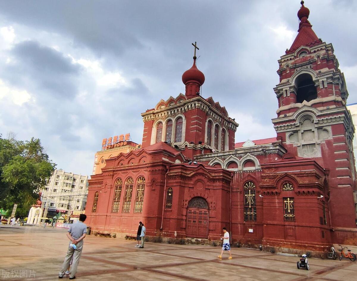 阿列克謝耶夫教堂,帶有晚期巴洛克風格的造型,直到1958年,這座教堂還有俄國祭司在主持活動,哈爾濱的文化地標建築之一。