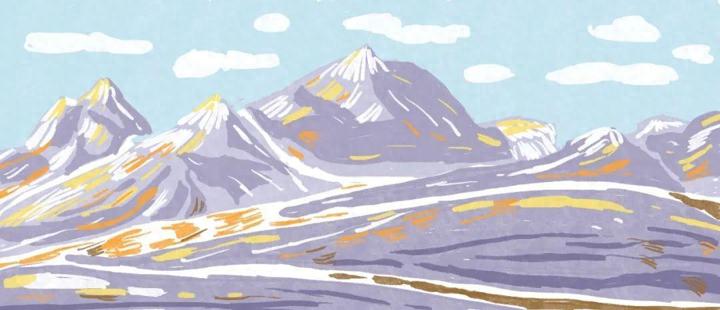 我從來沒有看見過如此壯觀的雪山羣。隨着天色漸明,原先藏在夜幕裏、被冰雪覆蓋的一座座山峯漸漸顯露真容。晨光中,那些銀白色的山峯高低錯落,連綿起伏。它們時而躲進飄動的雲霧中,時而又袒露出矯健偉岸的身姿。當太陽昇起,暖暖的陽光投射到那一座座雪山上時,銀白色的雪峯頓時被染上一層迷人的金黃色。這,就是讓許多人心心念唸的日照金山。