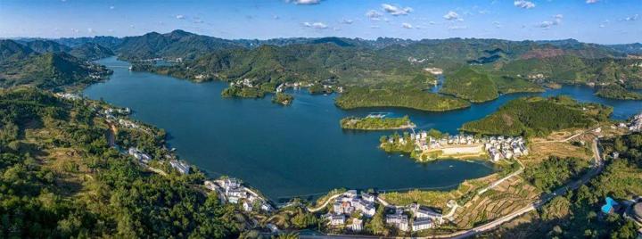 再次回到時間之中,是在盤陽河離開巴馬的最後一程中,因巖灘水電站封壩後自然形成的人工湖——賜福湖。狹長的湖面四周矗立着100多座未被淹沒的山頭,形成島嶼星羅棋佈之態,故又被稱爲“百島長湖”。