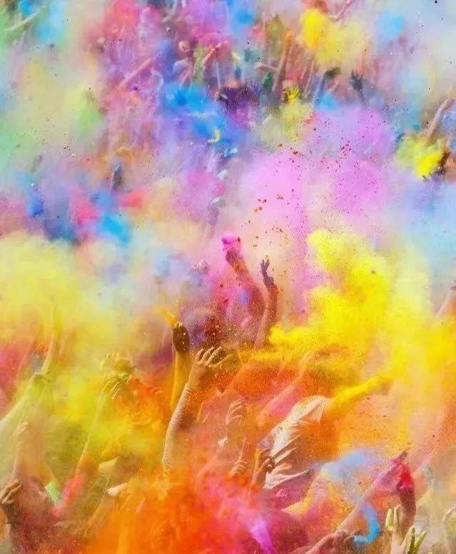 人們在大街小巷中互相潑灑五顏六色的粉末,氣氛熱烈,色彩鮮豔,到處都變成了色彩的海洋,極盡張揚與絢麗。