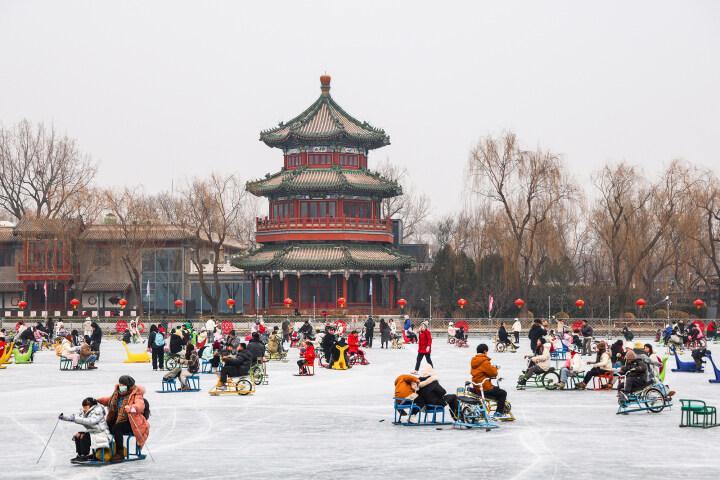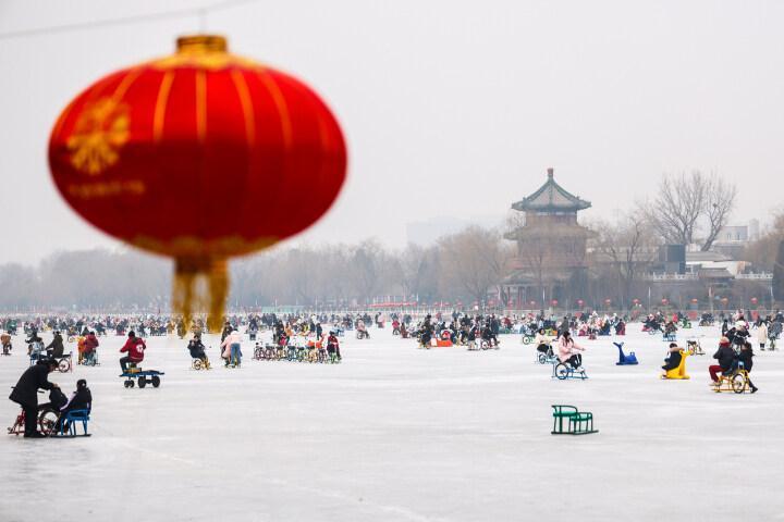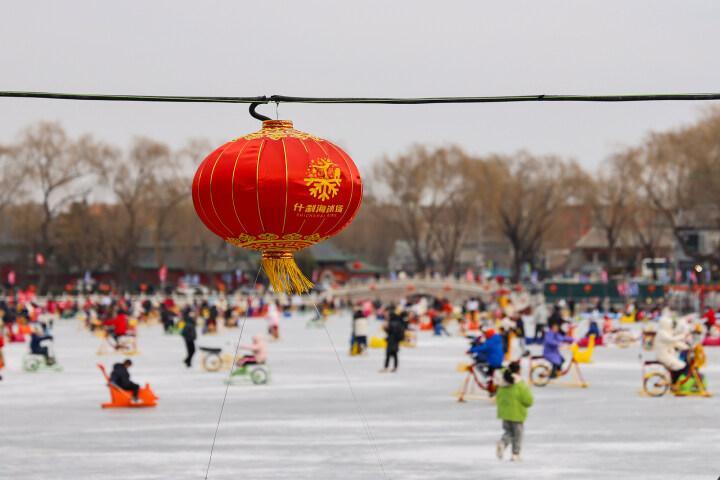 1月30日,北京什剎海年味漸濃,不少遊客在後海滑冰區遊玩。據瞭解,北京什剎海冰場營業至2024年2月4日。記者 曹雪文 攝